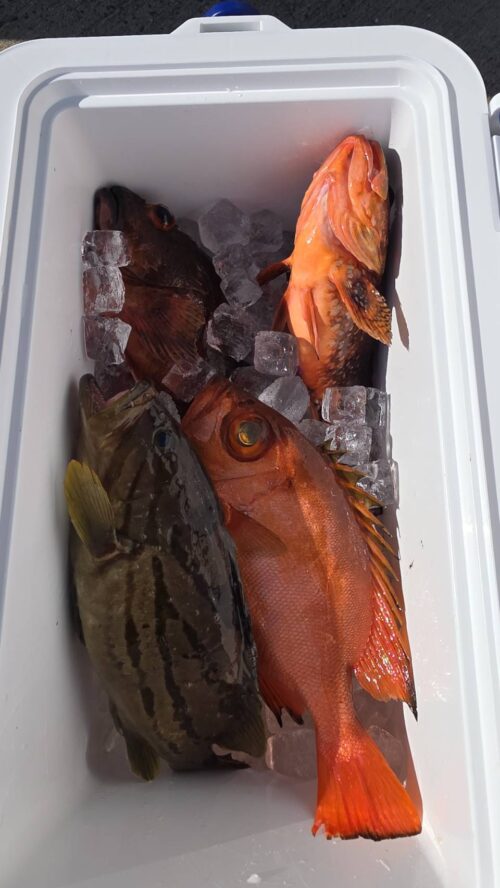 他 ホウキハタ.本カサゴ多数.沖メバル.ヒラメ.ベラ.スズキ.メダイ.キントキなど。
